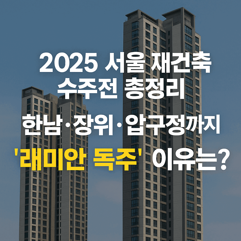 2025년 서울 재건축 시장은 브랜드 가치가 수주 경쟁을 좌우하는 흐름으로 바뀌고 있습니다. 삼성물산의 래미안은 단기간에 주요 단지를 휩쓸며 그 중심에 서 있습니다.